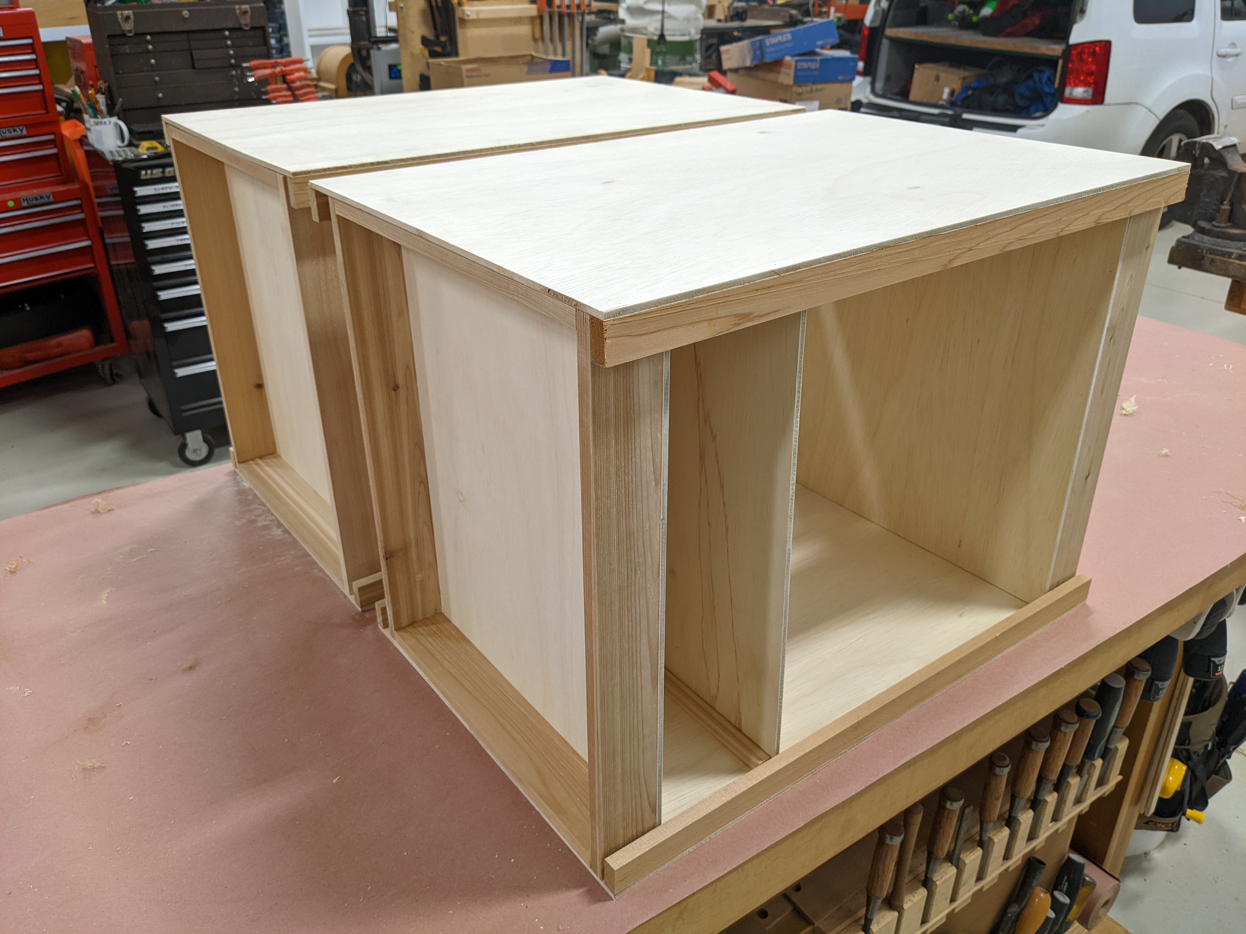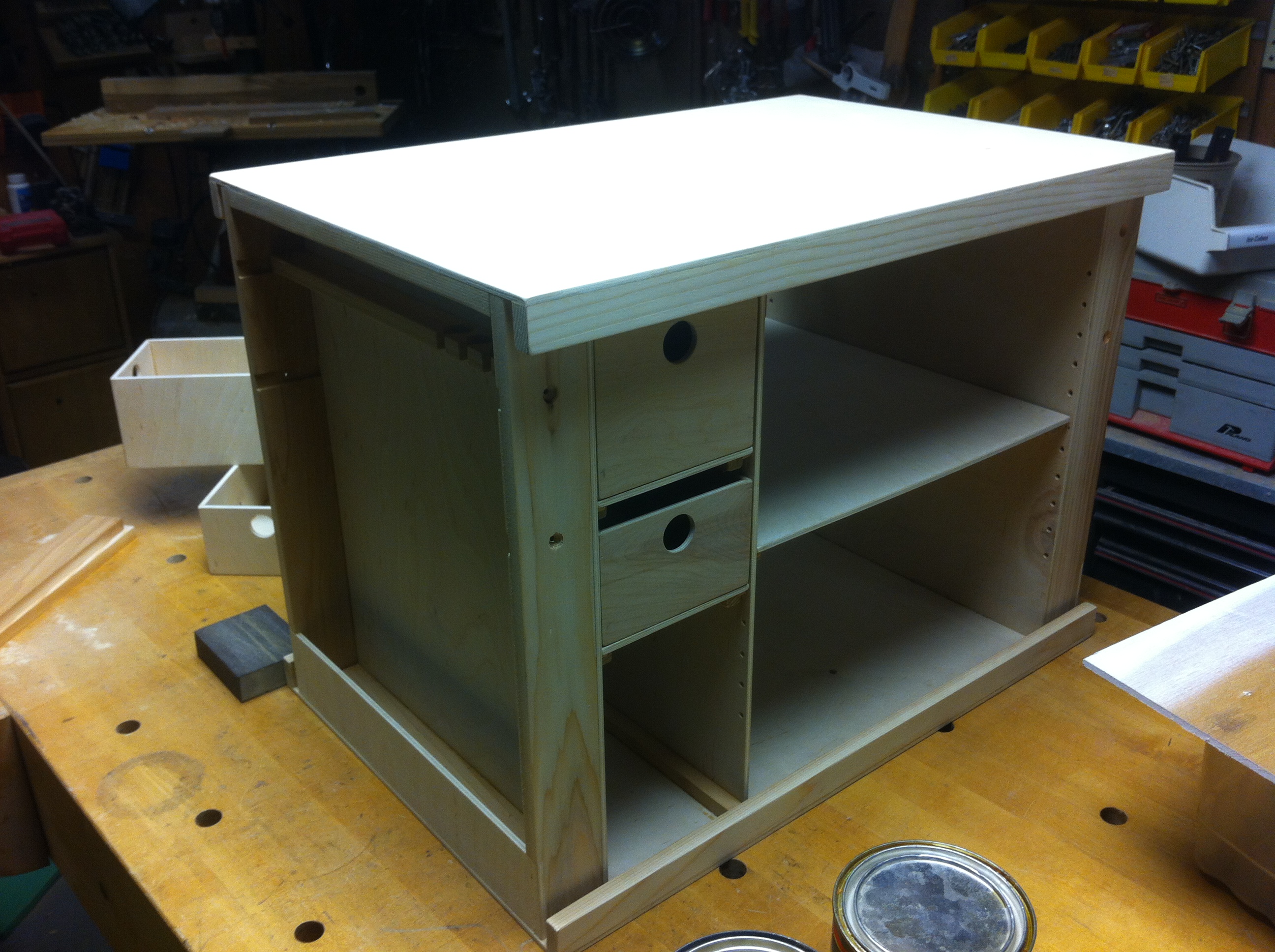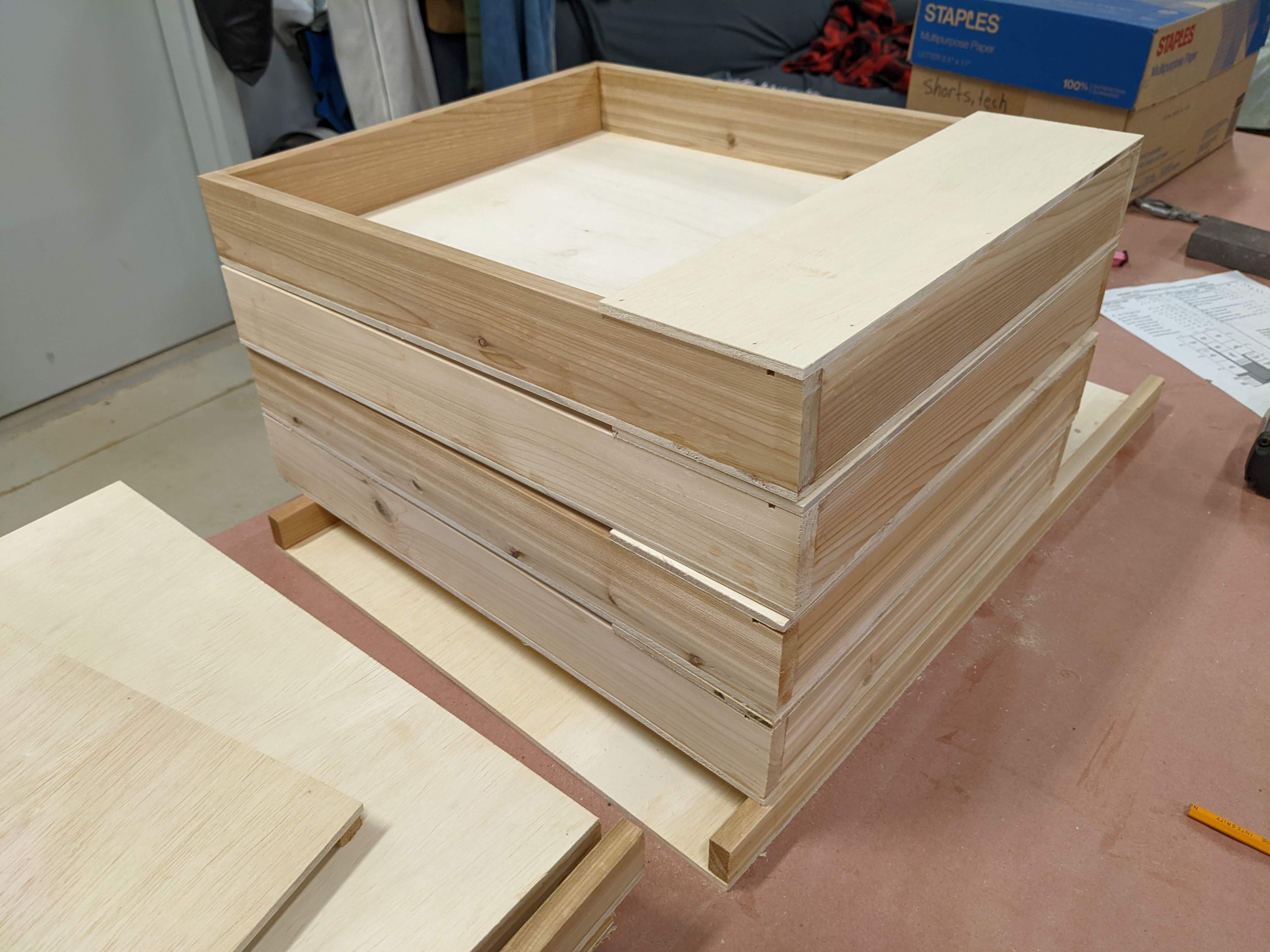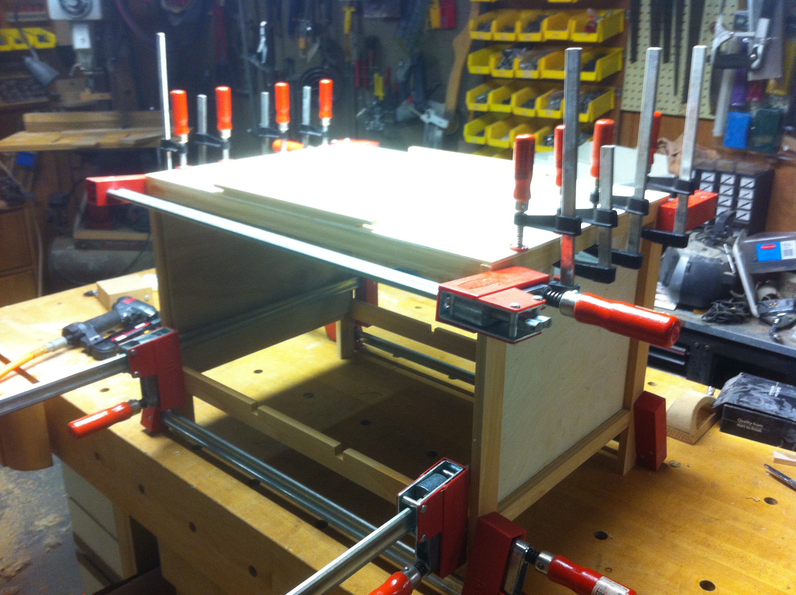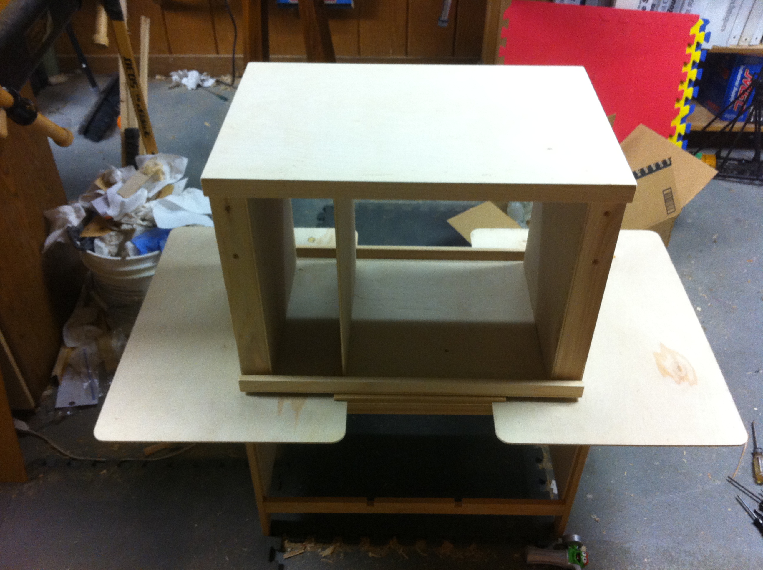 [UPDATE 9/4/2014] We used the box for almost a month straight and it was awesome. It has a number of scratches from being hauled in and out of the van many times a day. Still, it held up well and was it ever fantastic to have all the kitchen stuff easily accessible. After leaving the box setup in a monsoon rain which filled the spice racks with water I decided to drill a weep hole in each corner of the side cubbies to allow it to drain should that happen again.