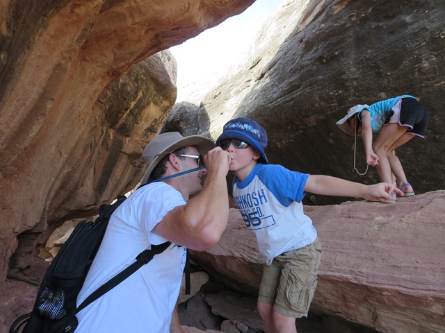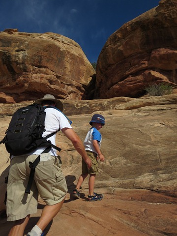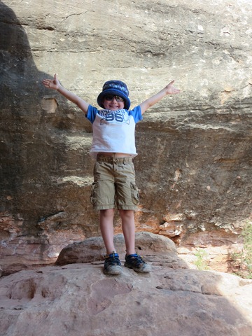 We went for a hike in the campground. Scott got a recommendation from a ranger. He requested a hike that allowed the kids to scramble over the rocks. We aren’t completely sure what the route is anymore, but we started at Squaw Flats Campground A and ended at Squaw Flats Campground B to get back to our car. Cody loved the rock climbing. He was ahead of Scott again while Brooke and I took care of the tail end.