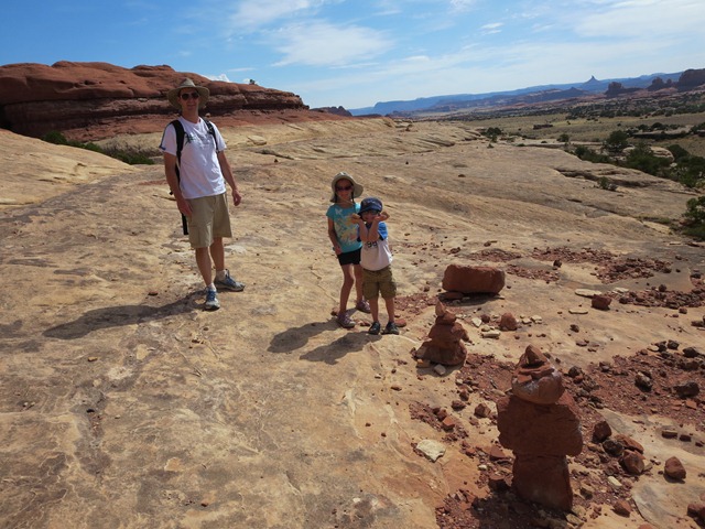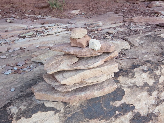 We quickly lost the dirt trail and had to follow cairns. What are cairns? Little piles of rocks helping point the way.