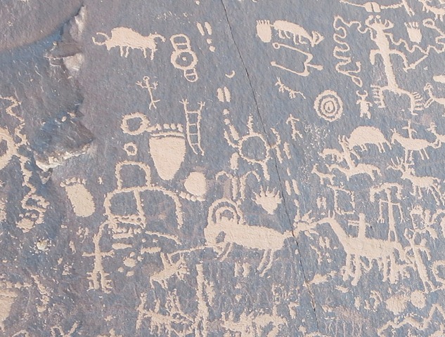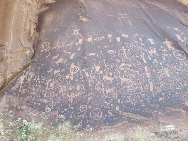 Most of the time when there is a roadside attraction Scott sends me out on “mobile deployment” for pictures while he stays in the car with the kids. This time Scott headed out to see Newspaper Rock. They are not sure what the petroglyphs mean.