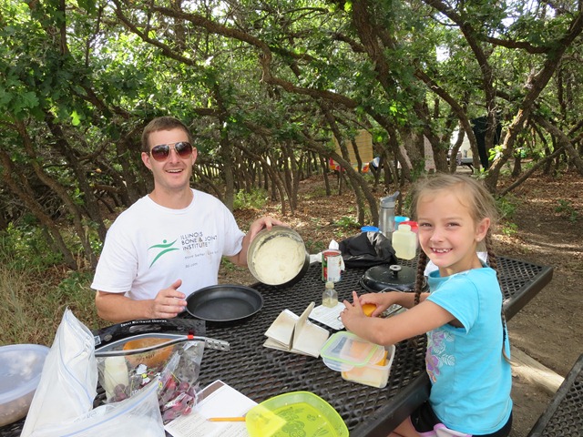 After Scott arrived back at camp he cooked up pancakes and prepared a sun shower for the kids. The kids were actually able to have a warm sun shower. In fact, we think it is the first time in their lives that their sun shower was actually warm water. All of the other times we have tried to warm the water the sun didn’t cooperate. No problem here!