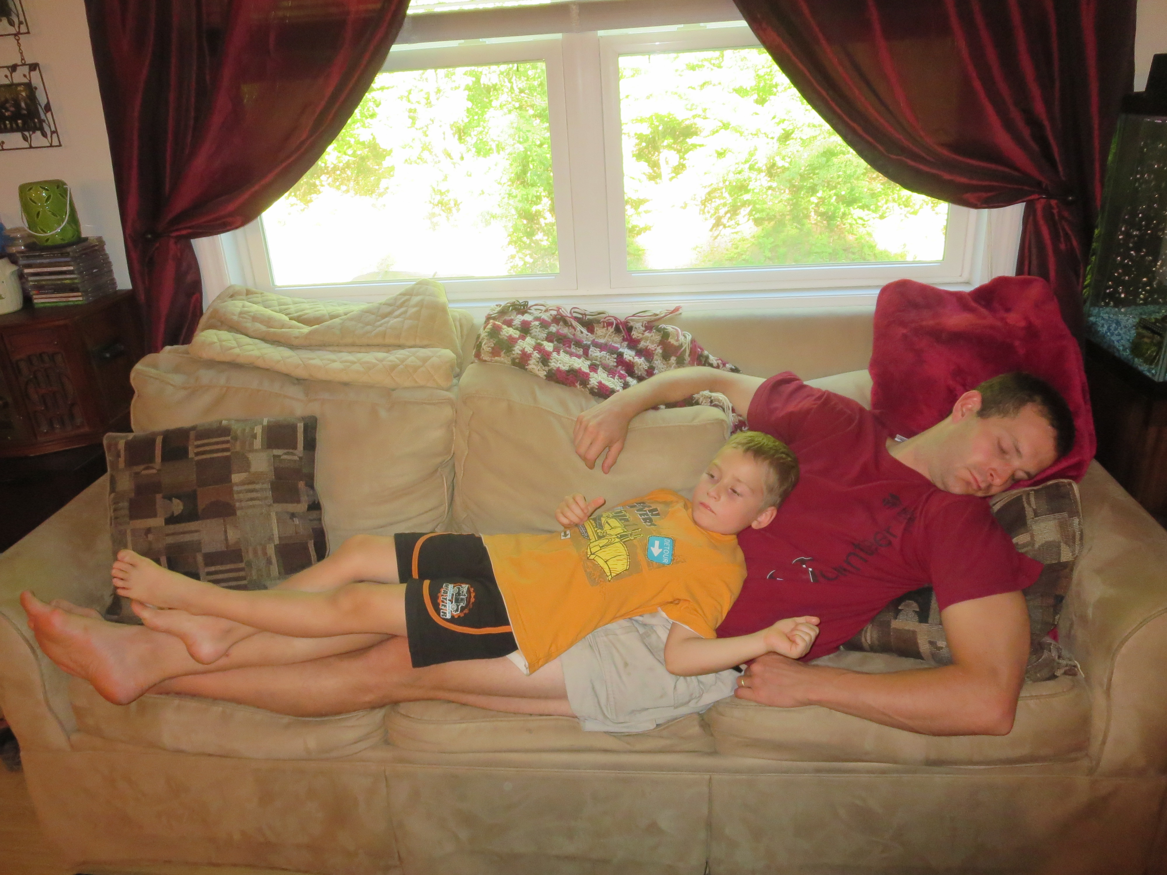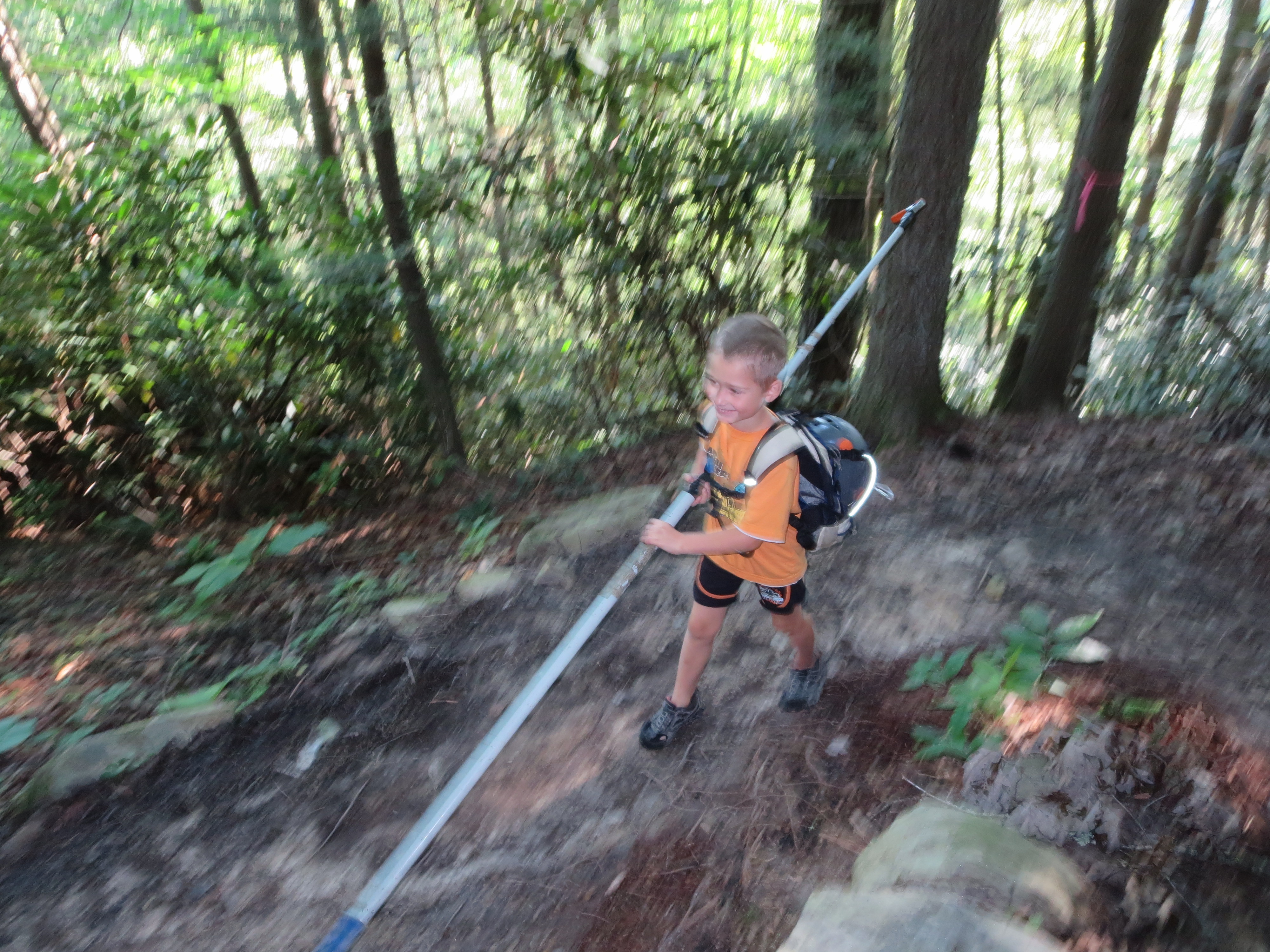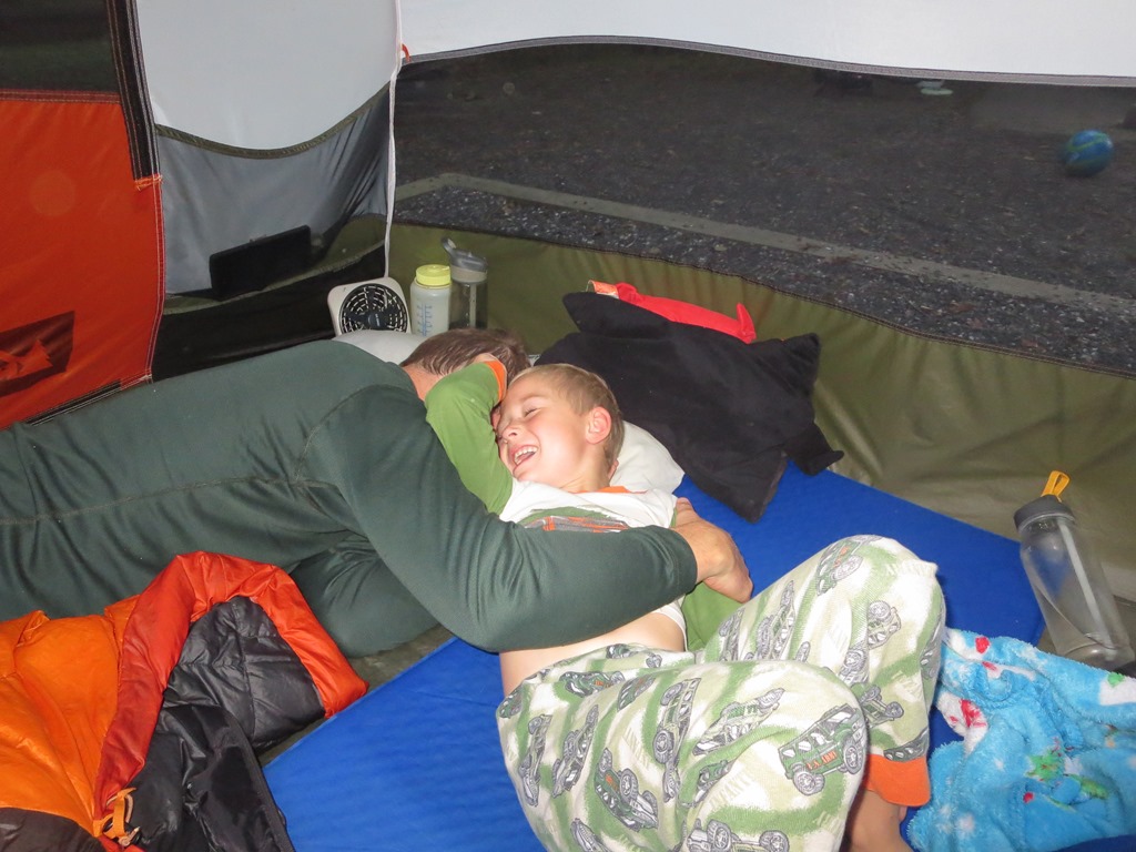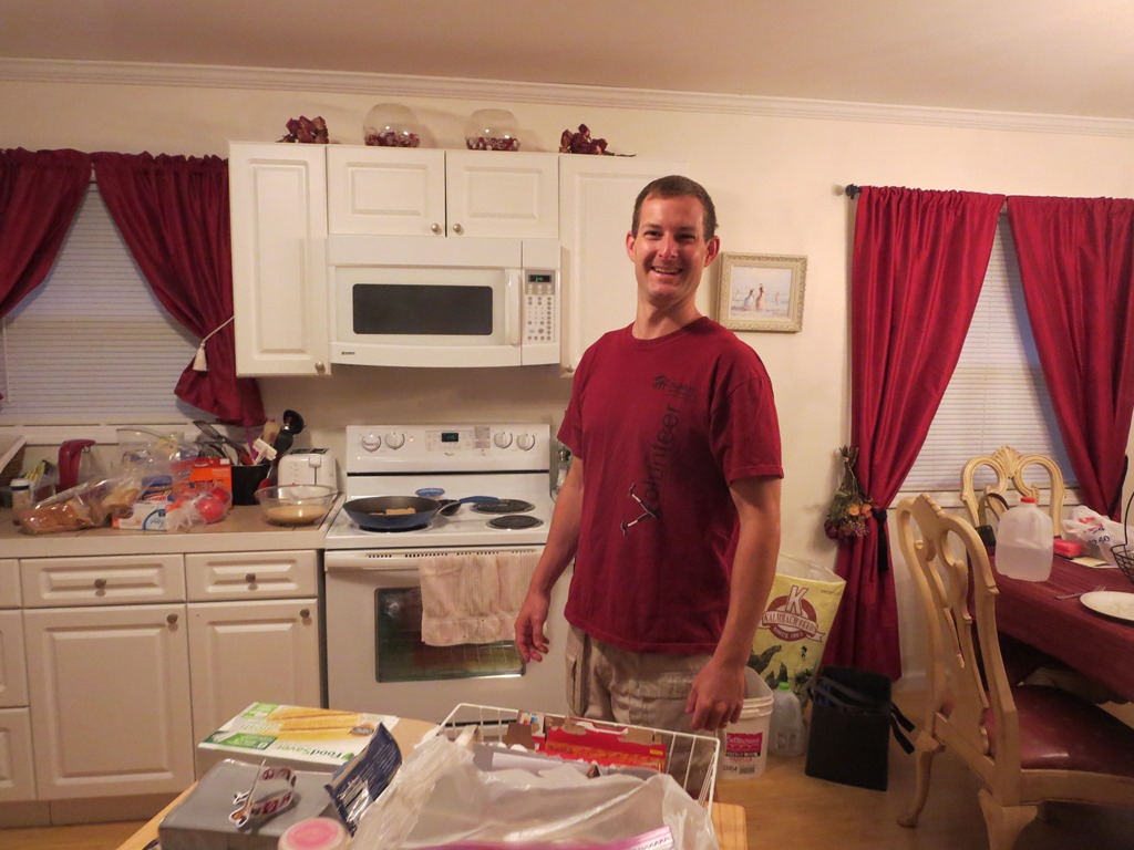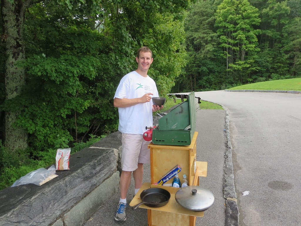 Scott’s alarm went off at 6am. After a breakfast of eggs, bacon, toast, and cereal we headed out the door at 7:45. Not having to take down the tent and cleaning with running water took off some of our getting going time. It is only 72 degrees and foggy this early, but it is expected to be another steamy day.
