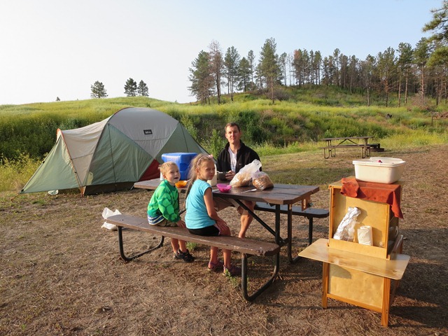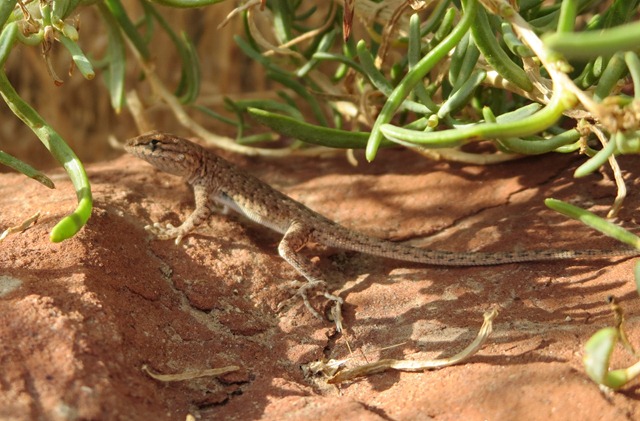 Early morning photos at our campsite. Cody was really into spotting the lizards. This one happened to pose for us. After a quick breakfast of cereal we headed to the Island in the Sky Visitor’s Center at Canyonlands National Park. We scooped up the Junior Ranger books, listened to a ranger talk on geological layers, and then watched the park movie.