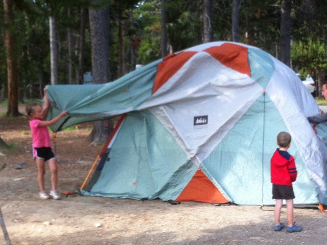 The kids were super helpers taking the tent down and cleaning up camp today.