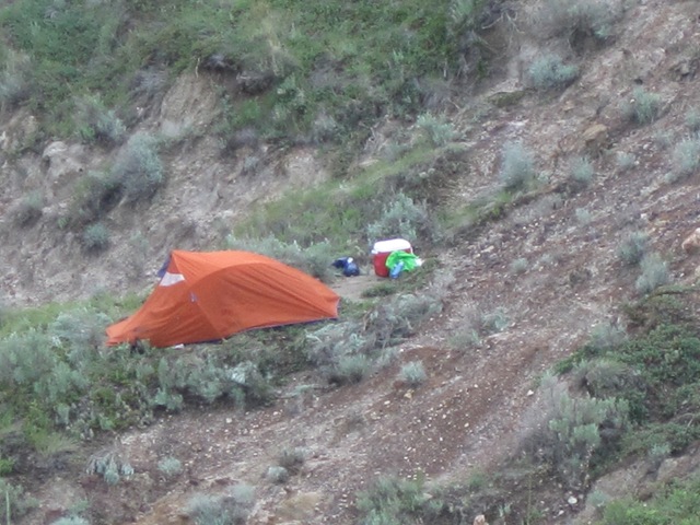 The people in the orange tent were nestled in the canyons behind us. It was quite a steep climb. Scott noted that they even managed to bring a red cooler with them. Brooke kept veering closer to the edge. She wanted to go down there too. Scott finally did take her on a walk down another side of the canyon. She spent the whole day asking to go up and down. She actually took a nap today.