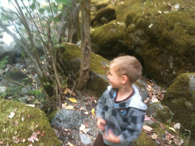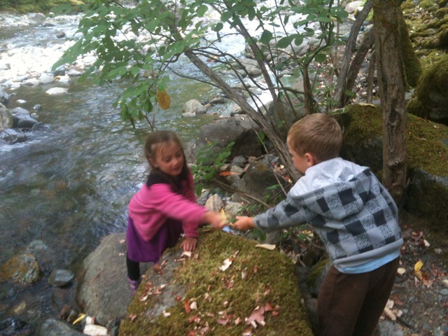 Before we left our campground the kids wanted to throw a few more rocks and leaves into the river. They had a system going where Brooke would find the rocks and hand them to Cody to throw. The only problem was that Cody didn’t really understand the idea of throwing the rocks not in the direct path of Brooke. I think Brooke rather enjoyed the close calls…
