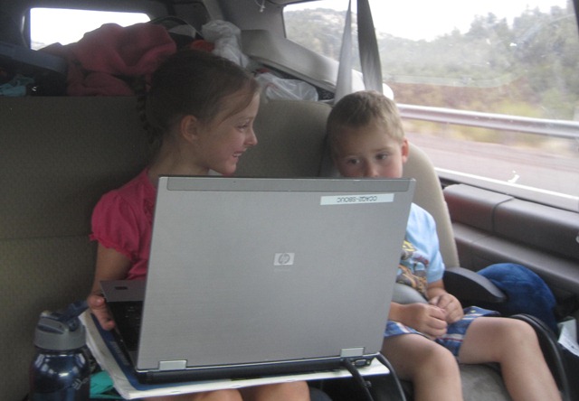 We let the kids watch their first movie in three and a half weeks. They watched Leap Frog Letter Factory.